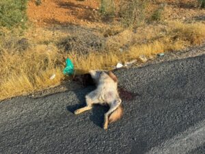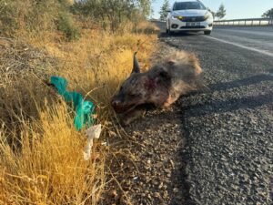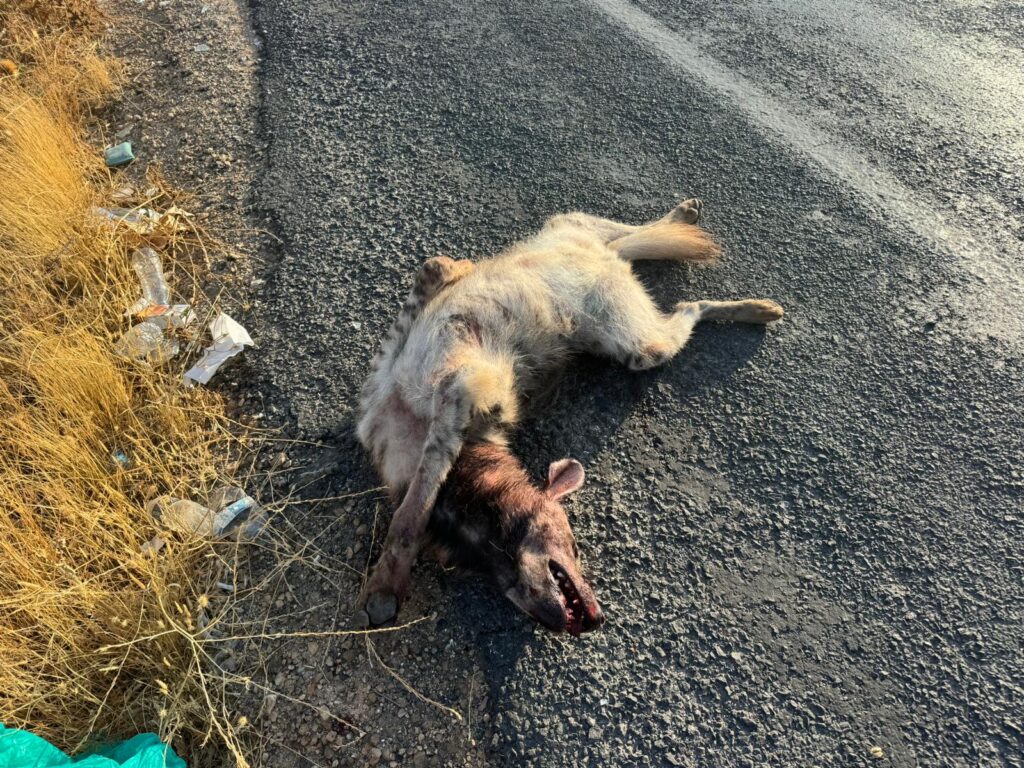 Şanlıurfa’nın Halfeti ilçesine bağlı Yeşilözen Mahallesi girişinde, nesli tükenme tehlikesi altında bulunan çizgili sırtlan, araç çarpması sonucu telef oldu.